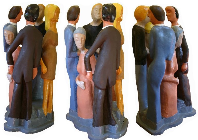 Smaller bronze and wood sculpture feature strongly throughout Azaz’s career. From 1980 onwards his bronzes were realised using the lost-wax casting method, while wood pieces were carved and painted