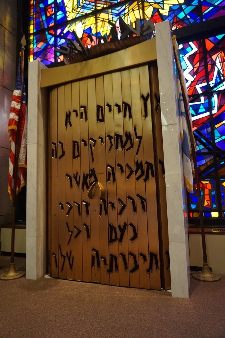 Bronze Ark doors with lettering.