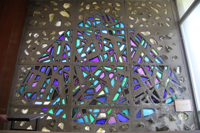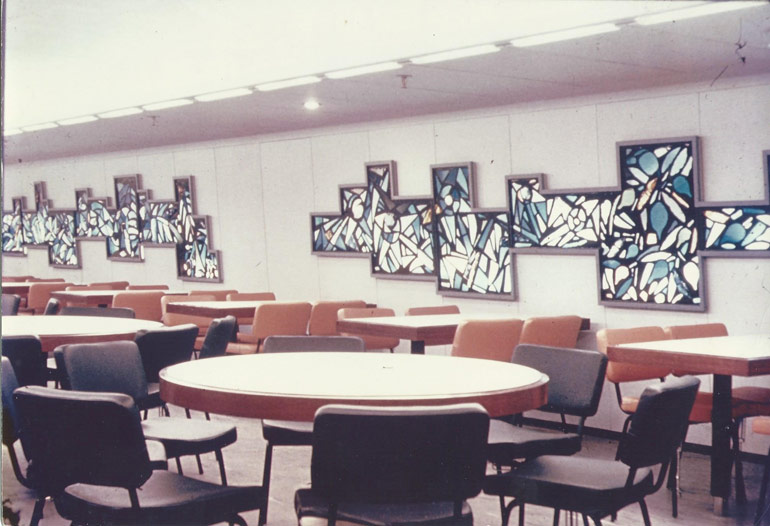 Azaz’s first commercial stained glass was a commission onboard the Zim Lines cruise liner S/S Moledet, which routinely sailed between New York and Haifa in the early 1960s.