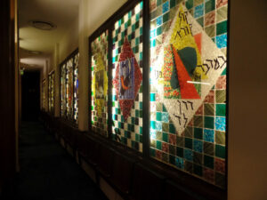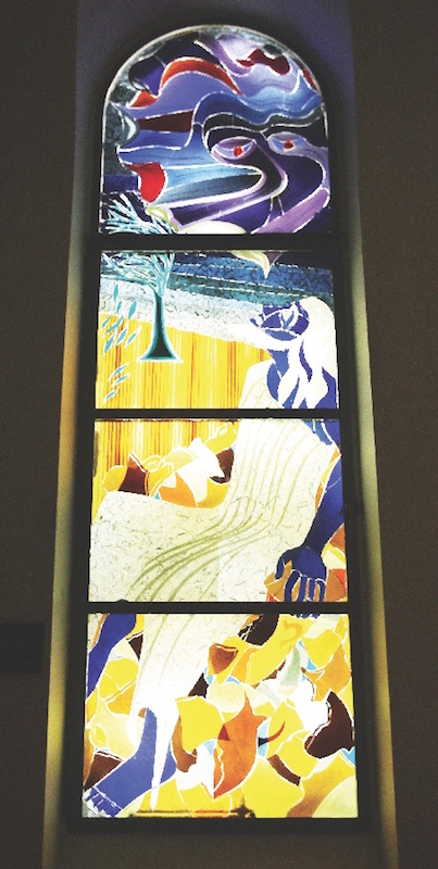 These works include sculptures in a variety of cast and wrought metals; poured and carved concrete; carved woods and stained-glass windows. Smaller pieces were created in Azaz’s studios and then shipped to the installation site, while larger structures were carved on site or pre-cast in local factories and forges.