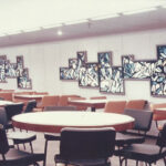 ‘FRUITS OF THE BIBLE’: Stained glass windows for main dining hall. Stained glass panels metres long and 30 metres in total, thin sheet and chunk coloured glass set in black epoxy, fiberglass reinforced both for light weight and vibrations of motors.